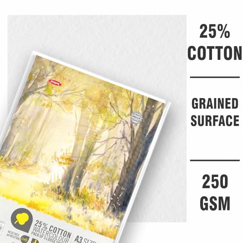 Anupam 25% Cotton Watercolour Paper Loose Sheets - Natural White - Cold Press Paper - 250 GSM - 20 Sheets - A5