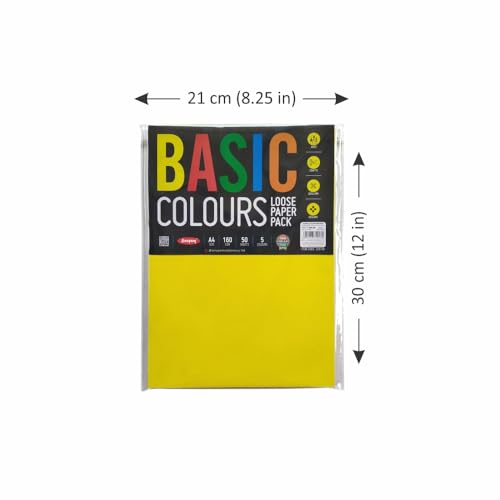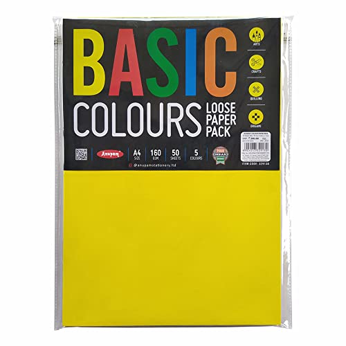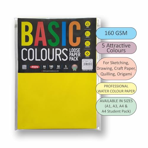 Anupam A4 Basic Colour Loose Paper 160gsm 5 Colors Paper for Arts, Crafts, Quilling, Origami (50 Sheet)
