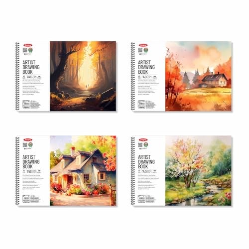 • Dual Spiral Bound : The top spiral bound artist drawing book is easily turn the pages and presentation ideal for both left-handed and right-handed. Portable drawing book art drawing pad you can take it to everywhere. Ideal for field art & travel.