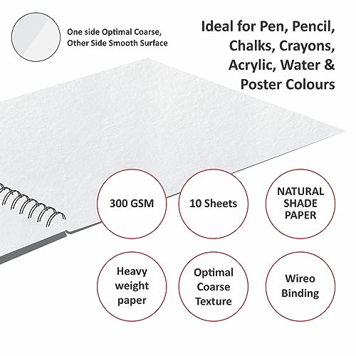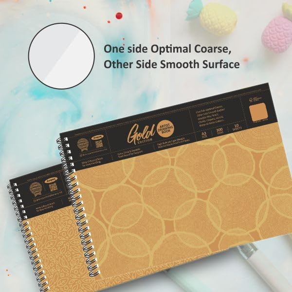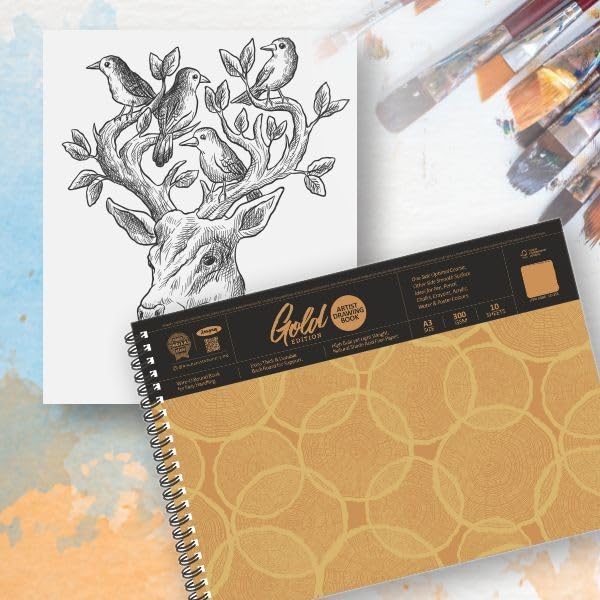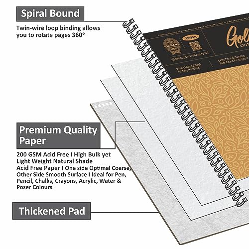 • Premium & Durable Material : Anupam gold artist sketchbook 300gsm strong toughness and durability of this sketching paper pad allows for erasing without damaging paper surface so it can stand up to multiple drawings without warping. This spiral drawing bo