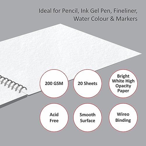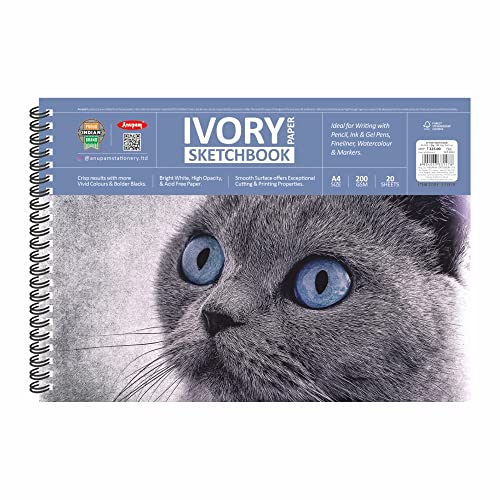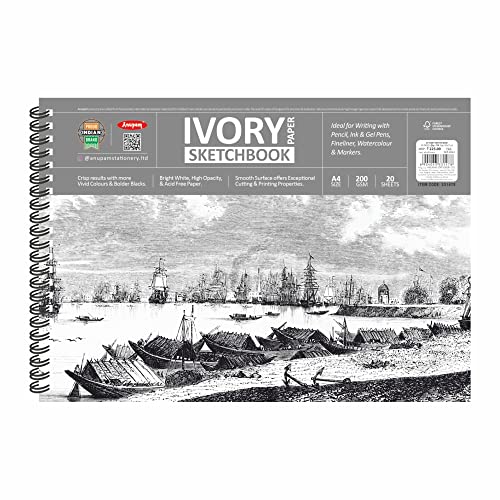 Anupam Ivory Sketch Book A4 Size Spiral-Bound Sketchpad Acid Free Paper 180 GSM (20 Sheets, 40 Pages)