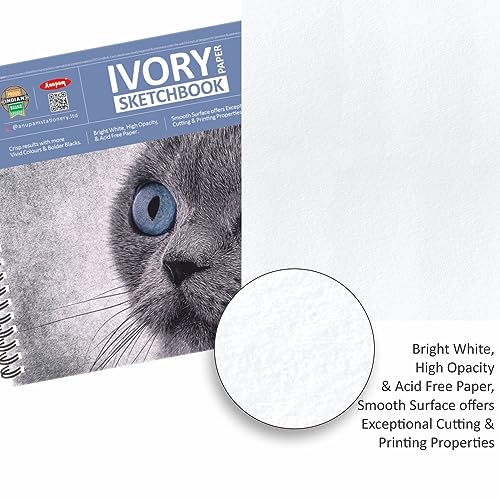 • Premium & Durable Material : Anupam Ivory sketch book 250 gsm strong toughness and durability of this cartridge paper allows for erasing without damaging paper surface so it can stand up to multiple drawings without warping. This spiral drawing book can b