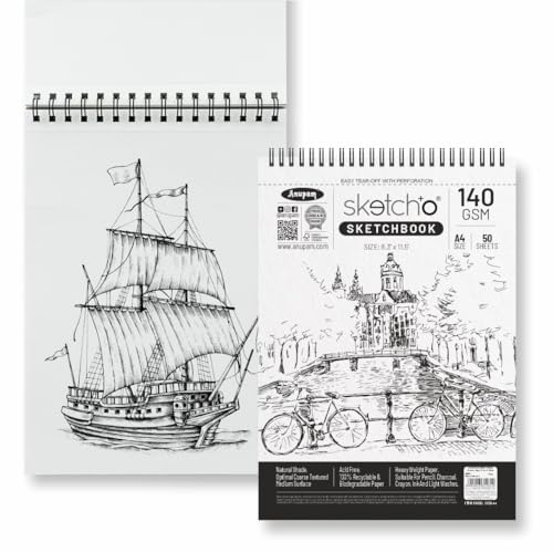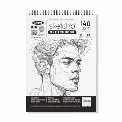 Anupam is an in-house manufacturing brand which supplies stationery products and art materials in India. It was incepted in the year 1973Anupam stationery prides in providing only the highest quality. Whether its a reflection of our happiness our grief our joy our wonder or our longing art is the legacy we will leave behind to tell future generations who we were at this place in time.Although Anupam started its journey with papers it now has an array of art products starting from papers and canvases to easels and takes pride in supplying quality products at an affordable rate.We want to ensure you have a great experience with our products because we truly care about our customers. we're proud of so purchase our products with the confidence. Ideal Use: Sketching drawing doodling graphite painting charcoal painting watercolors acrylic paint ink and pencil thanks to its premium surface. Best sketch book for sketching Sizes available - A5 A4 - Portrait Square (20cm x 20cm) A6 and A3 - Portrait High-quality drawing paper may be used with a variety of media including The ideal paper for sketching drawing manga cartoons still life stippling and experimenting with new techniques Strong smooth and easily absorbing colors and lines which reduces blotching smudges and accidents. Coloring book sketchbook and blank-page book appropriate for all ages Thickness: 140 GSM Cartridge Paper Type of Binding: Hardbound Paper Colour: Natural Shade Cartridge Paper Type of Paper: Optimal Coarse PH Neutral and Acid-Free Paper Number of Pages: 128 in all the sizes