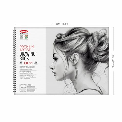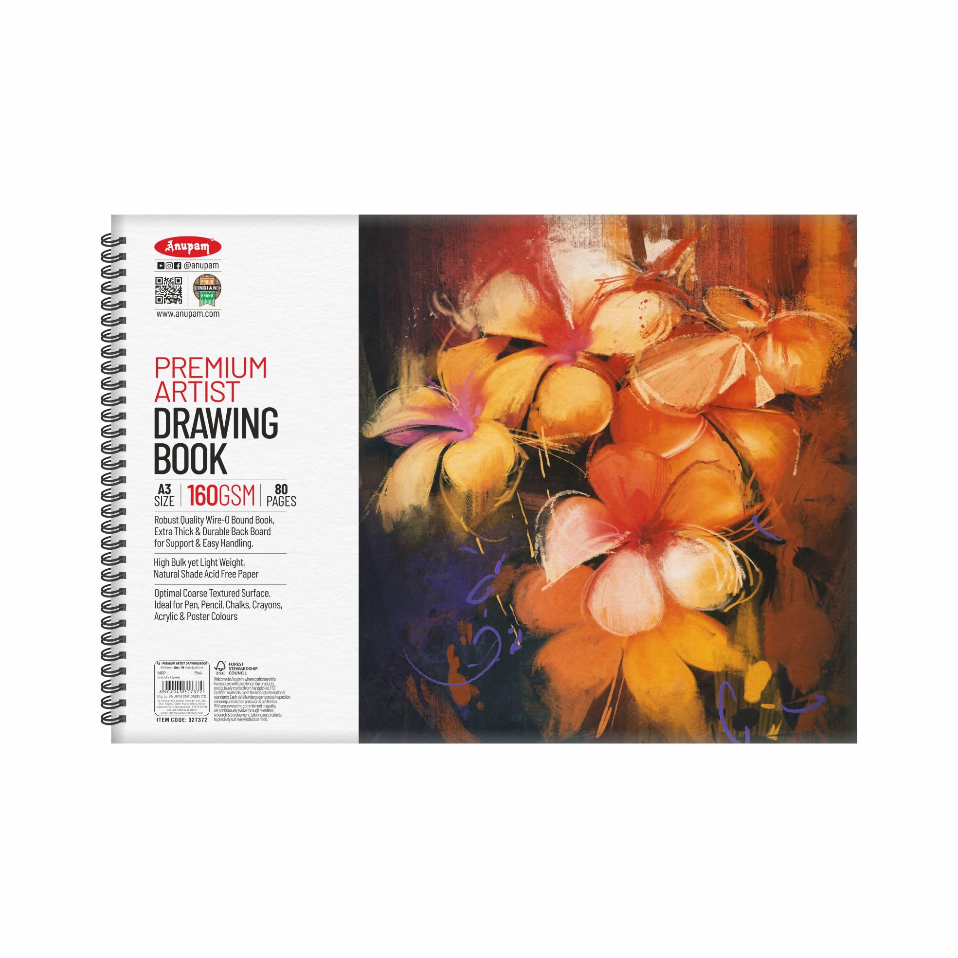 Anupam Artist Premium Drawing Book A3 | Acid-free Cartridge Paper 160GSM (40 Sheets, 80 Pages) | Spiral-Bound Sketchpad for Artists & Professionals for Marker Colored Pencil Charcoal Pastel