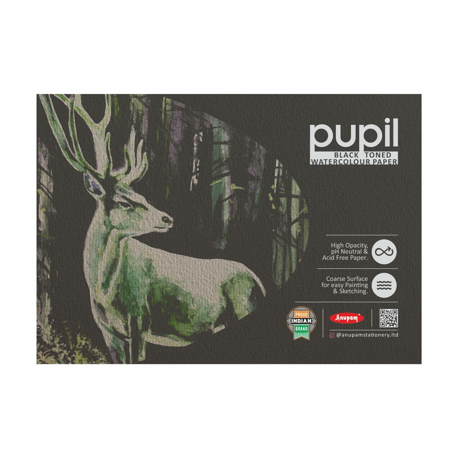 Anupam Pupil Black Toned Watercolour Paper Pad - Cold Press Paper - 250 GSM - 12 Sheets - A5