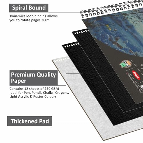 Anupam is an in-house manufacturing brand which supplies stationery products and art materials in India. It was incepted in the year 1973Anupam stationery prides in providing only the highest quality. Whether its a reflection of our happiness our grief our joy our wonder or our longing art is the legacy we will leave behind to tell future generations who we were at this place in time.Although Anupam started its journey with papers it now has an array of art products starting from papers and canvases to easels and takes pride in supplying quality products at an affordable rate.We want to ensure you have a great experience with our products because we truly care about our customers. we're proud of so purchase our products with the confidence. Ideal Use: Sketching drawing doodling graphite painting charcoal painting watercolors acrylic paint ink and pencil thanks to its premium surface. Best sketch book for sketching Sizes available - A5 A4 - Portrait Square (20cm x 20cm) A6 and A3 - Portrait High-quality drawing paper may be used with a variety of media including The ideal paper for sketching drawing manga cartoons still life stippling and experimenting with new techniques Strong smooth and easily absorbing colors and lines which reduces blotching smudges and accidents. Coloring book sketchbook and blank-page book appropriate for all ages Thickness: 140 GSM Cartridge Paper Type of Binding: Hardbound Paper Colour: Natural Shade Cartridge Paper Type of Paper: Optimal Coarse PH Neutral and Acid-Free Paper Number of Pages: 128 in all the sizes