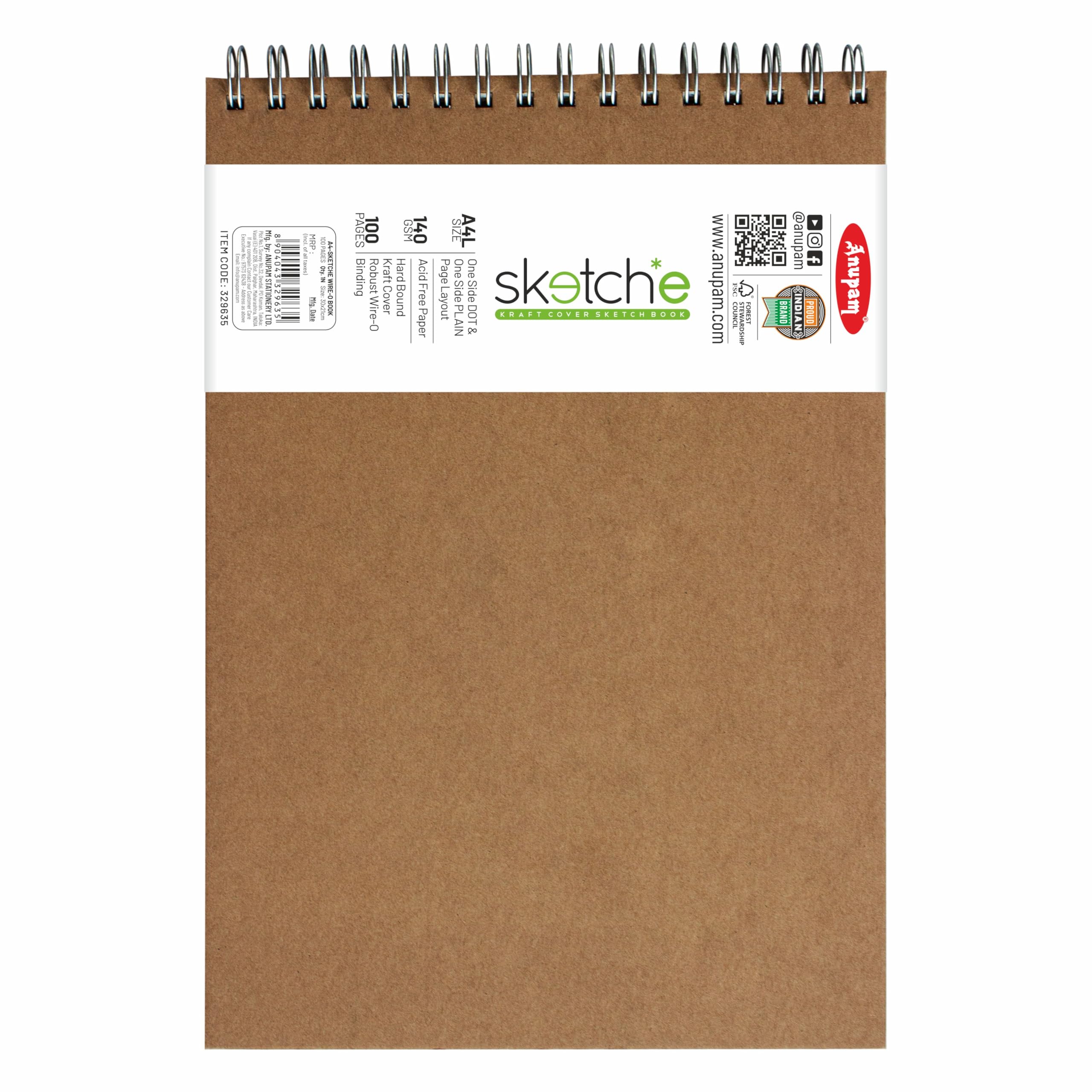 Anupam is an in-house manufacturing brand which supplies stationery products and art materials in India. It was incepted in the year 1973Anupam stationery prides in providing only the highest quality. Whether its a reflection of our happiness our grief our joy our wonder or our longing art is the legacy we will leave behind to tell future generations who we were at this place in time.Although Anupam started its journey with papers it now has an array of art products starting from papers and canvases to easels and takes pride in supplying quality products at an affordable rate.We want to ensure you have a great experience with our products because we truly care about our customers. we're proud of so purchase our products with the confidence. Ideal Use: Sketching drawing doodling graphite painting charcoal painting watercolors acrylic paint ink and pencil thanks to its premium surface. Best sketch book for sketching Sizes available - A5 A4 - Portrait Square (20cm x 20cm) A6 and A3 - Portrait High-quality drawing paper may be used with a variety of media including The ideal paper for sketching drawing manga cartoons still life stippling and experimenting with new techniques Strong smooth and easily absorbing colors and lines which reduces blotching smudges and accidents. Coloring book sketchbook and blank-page book appropriate for all ages Thickness: 140 GSM Cartridge Paper Type of Binding: Hardbound Paper Colour: Natural Shade Cartridge Paper Type of Paper: Optimal Coarse PH Neutral and Acid-Free Paper Number of Pages: 128 in all the sizes