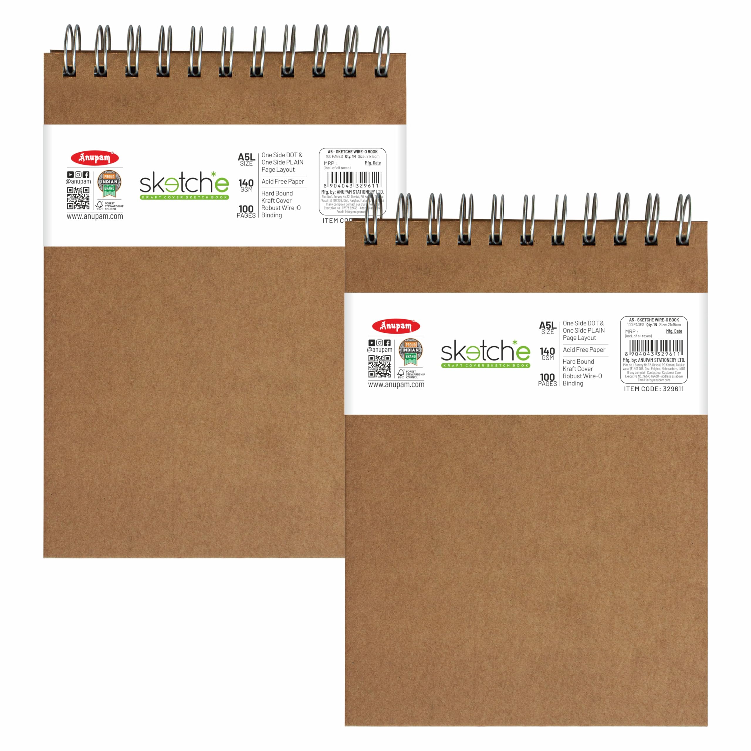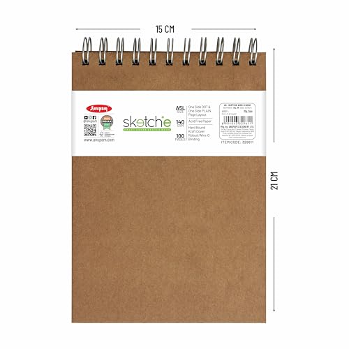 Anupam is an in-house manufacturing brand which supplies stationery products and art materials in India. It was incepted in the year 1973Anupam stationery prides in providing only the highest quality. Whether its a reflection of our happiness our grief our joy our wonder or our longing art is the legacy we will leave behind to tell future generations who we were at this place in time.Although Anupam started its journey with papers it now has an array of art products starting from papers and canvases to easels and takes pride in supplying quality products at an affordable rate.We want to ensure you have a great experience with our products because we truly care about our customers. we're proud of so purchase our products with the confidence. Ideal Use: Sketching drawing doodling graphite painting charcoal painting watercolors acrylic paint ink and pencil thanks to its premium surface. Best sketch book for sketching Sizes available - A5 A4 - Portrait Square (20cm x 20cm) A6 and A3 - Portrait High-quality drawing paper may be used with a variety of media including The ideal paper for sketching drawing manga cartoons still life stippling and experimenting with new techniques Strong smooth and easily absorbing colors and lines which reduces blotching smudges and accidents. Coloring book sketchbook and blank-page book appropriate for all ages Thickness: 140 GSM Cartridge Paper Type of Binding: Hardbound Paper Colour: Natural Shade Cartridge Paper Type of Paper: Optimal Coarse PH Neutral and Acid-Free Paper Number of Pages: 128 in all the sizes