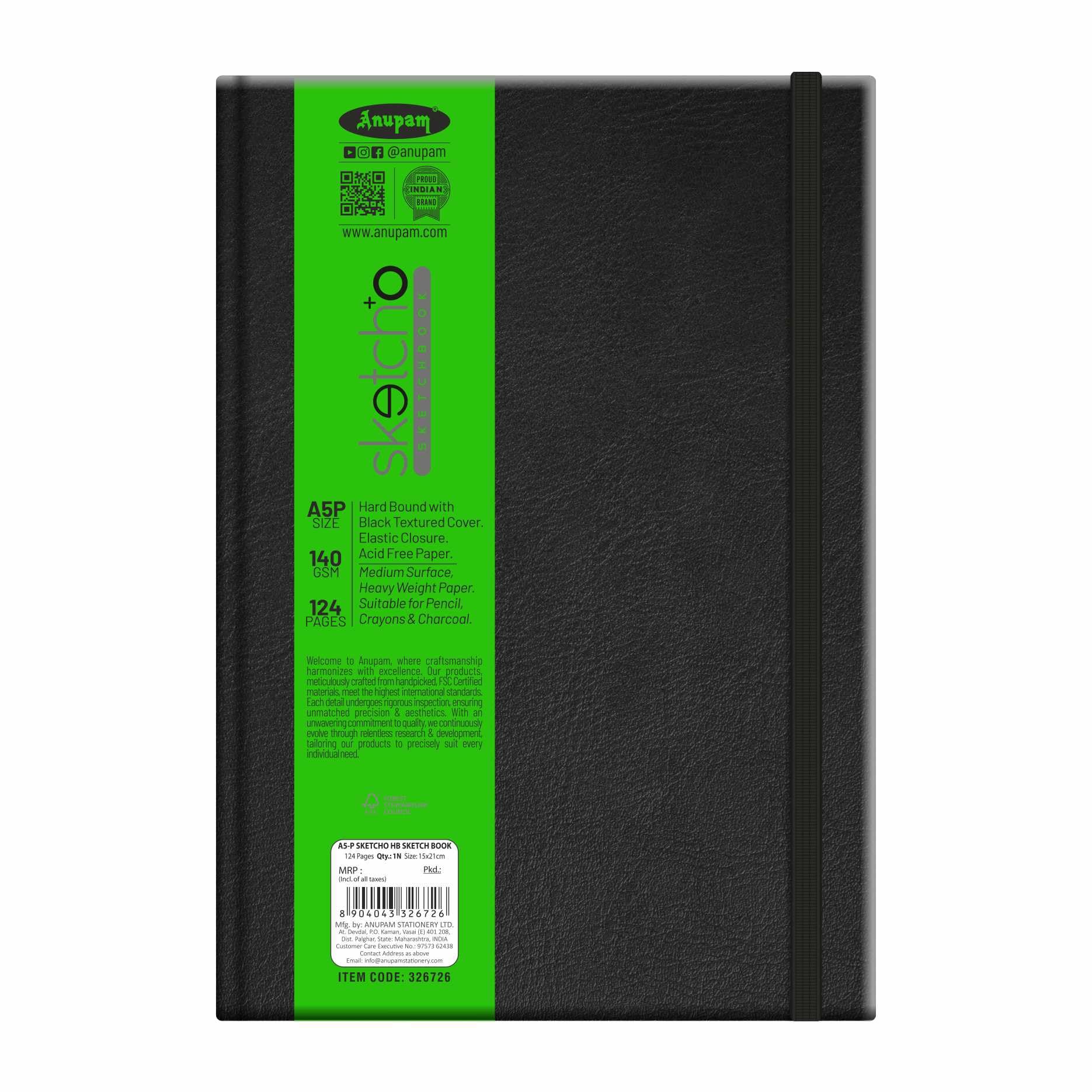 Anupam SketchO Sketchbook Hardbound, Portrait Opening 140 GSM Acid Free Natural Shade Paper (A5 Size 128 Pages)