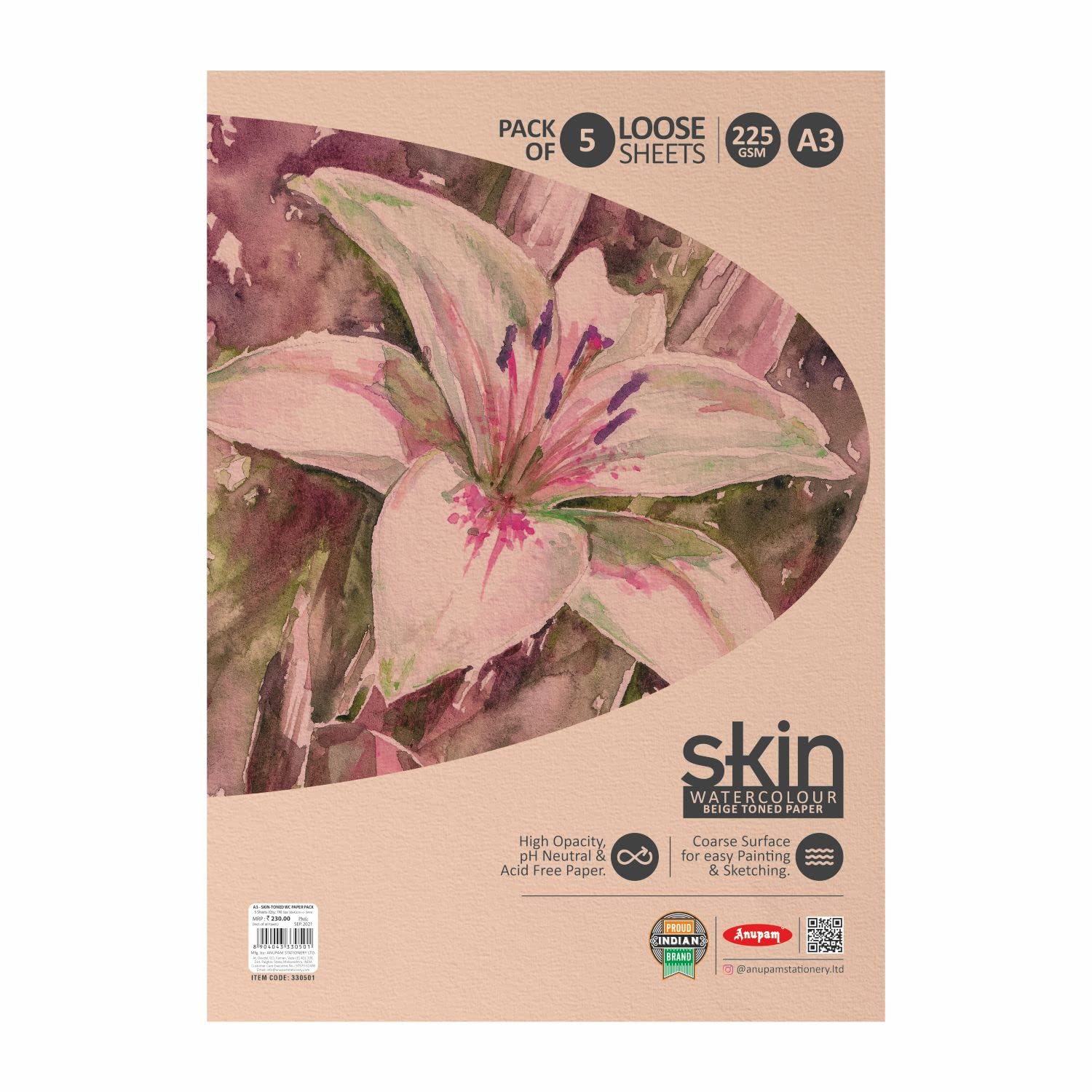 Anupam Skin Watercolour Beige Toned Paper - Acid Free - Cold Press Paper - 10 Loose Sheet - 225 GSM - A4