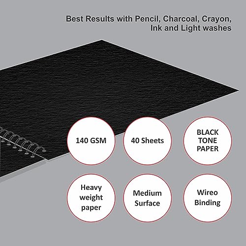 Anupam Ash Black Toned Sketch Book A3 Size Spiral Binding Drawing Notebook 140Gsm for Sketching & Drawing with Pen Pencil Charcoal Pastel & Wax Crayon for Artist's & Amateurs (40 Pages / 20 sheets)