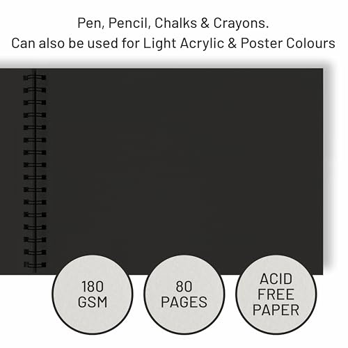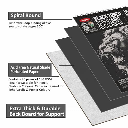 Anupam Ash Black Toned Sketch Book A4 Size Spiral Binding Drawing Notebook 140Gsm for Sketching & Drawing with Pen Pencil Charcoal Pastel & Wax Crayon for Artist's & Amateurs (80 Pages / 40 Sheets)