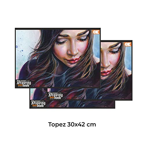 All Drawing Books Have a Thickness Of 100gsm With 36 Pages Each It comes in 4 Different Sizes 1st is called RUBY its size is 17x24cm 2nd is Opal in 21x30cm 3rd is Jade in 24x34cm and 4th is TOPAZ in 30x42cm. All sizes have different covers Re-erasable Cartridge paper Suitable for light washes of Poster colour watercolouring and sketching Its ideally used for drawing purposes and it has a landscape oriental in white colour papers
