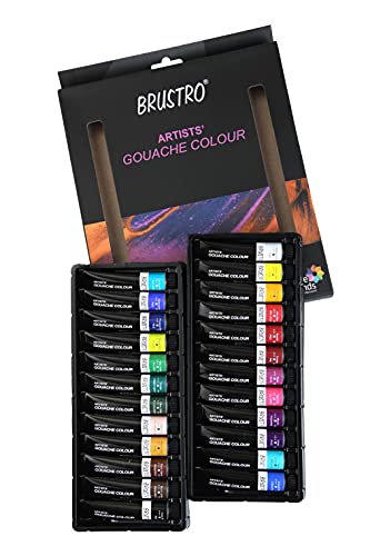 Brustro Gouache colors boast high opacity due to their rich pigment load. These versatile paints work directly from the tubes as watercolor when diluted or mixed with various mediums offering limitless potential. They provide a uniform matte and streak-free finish with outstanding workability coverage durability and blendability. Popular among designers and illustrators they ease reproduction without glare issues making photography of work effortless. 25% Cotton chlorine & acid Free. Ideal for all fine art techniques - wet and dry internally and externally sized for ideal absorbance. Synthetic brushes imitate natural ones offering durability easy maintenance and shape retention. Their shorter handles enhance control for precise brushstrokes. Their paint-holding capacity suits thicker paints like Gouache and acrylics aided by slight bristle stiffness. With great spring and resilience these brushes maintain shape after each stroke. The set's diverse brush types (rounds dagger flat filbert) accommodate various techniques from detailing to washes blocking blending and filling small areas.
