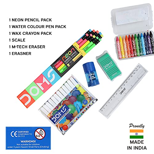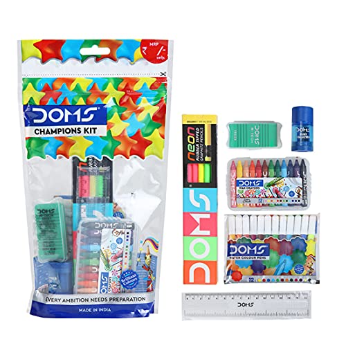 Doms Champions Kit | Perfect Value Pack | Kit For School Essentials | Gifting Range For Kids | Combination of 6 Stationery Items | Pack of 2
