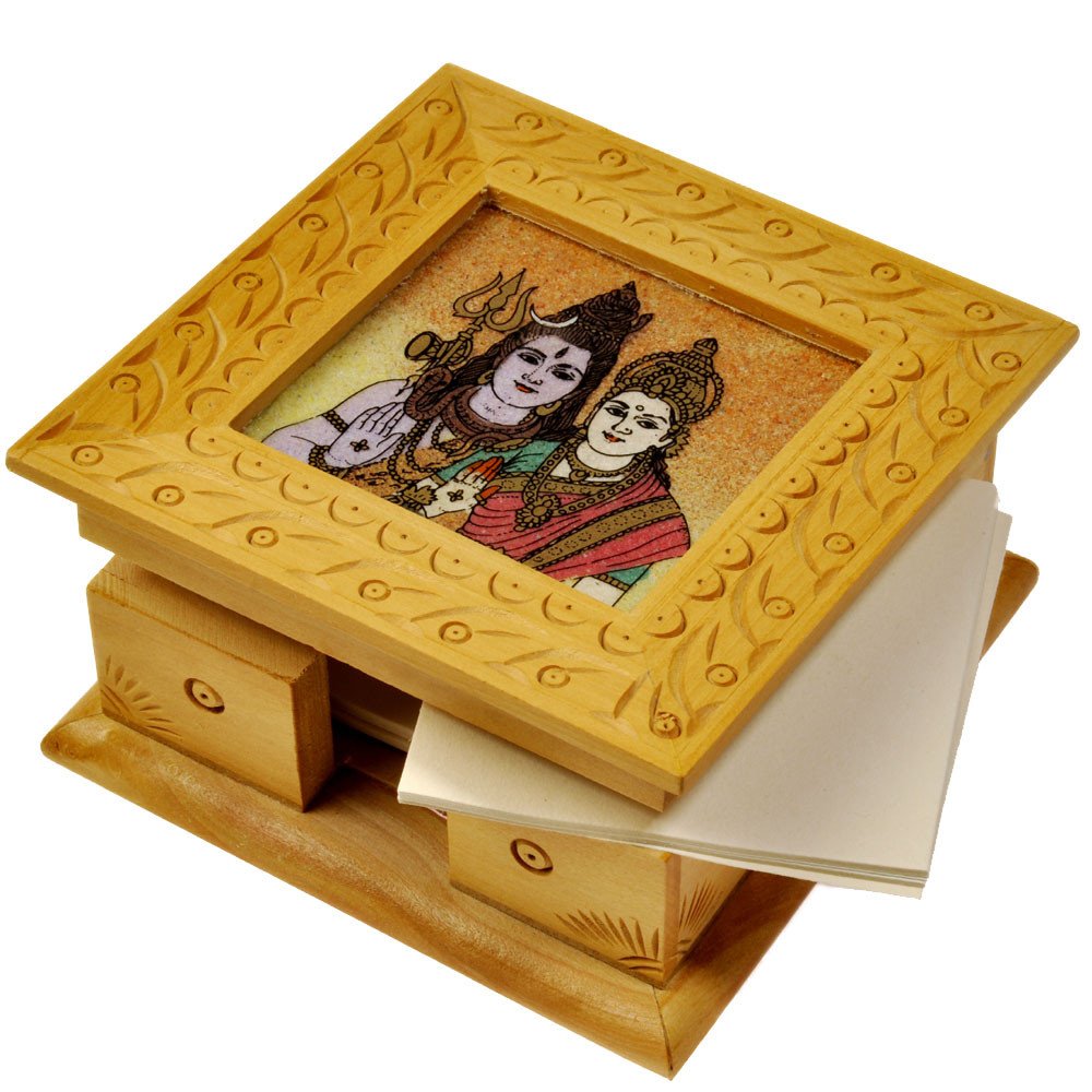 This handcrafted slip pad is made of wood and decorated with gemstone painting. The painting is hand made with finely crushed real gemstones on a glass base. The gift piece has been prepared by the creative artisans of Jaipur.