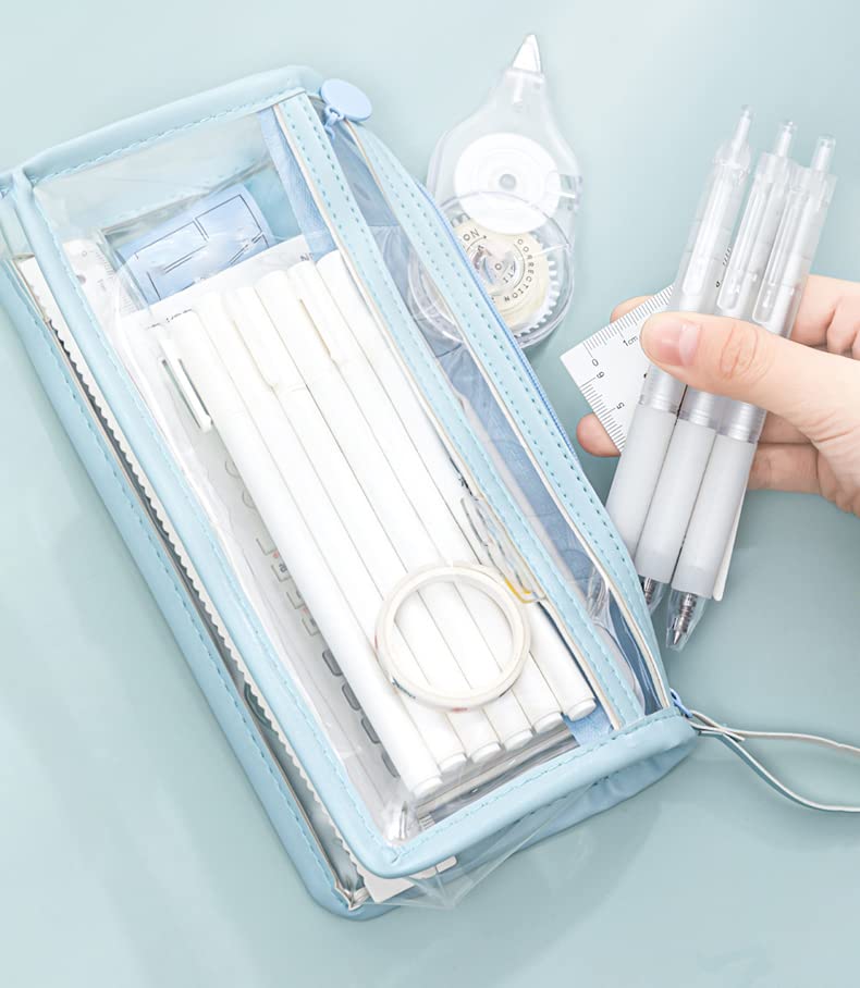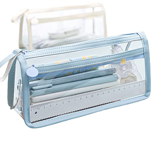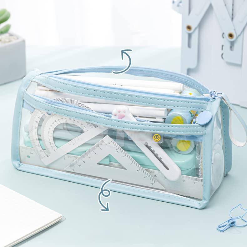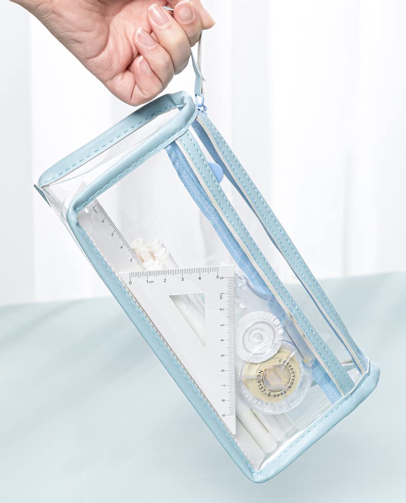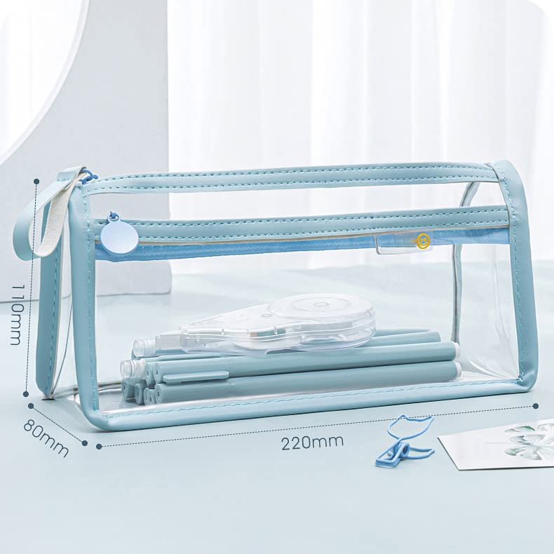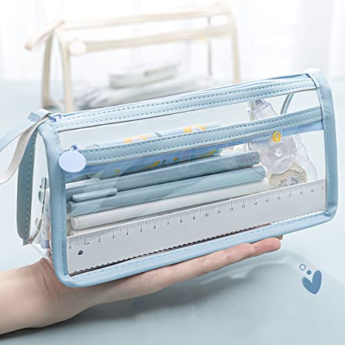 The Magic Makers Large Capacity Pencil Bag Pencil Pouch With Zipper Closure Portable Makeup Pouch Case Cute Stationery Bag For Students Girls Adults Office (Transparent Blue)