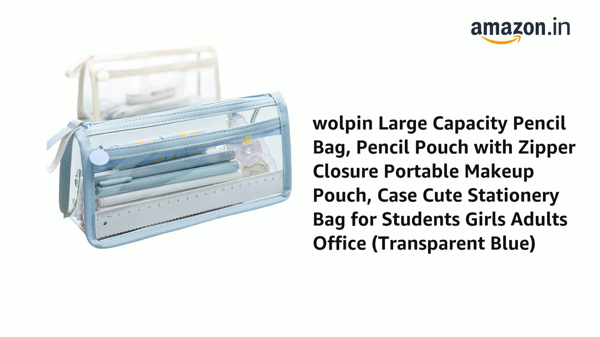 • Package Content: 1 Transparent Pencil Bag Size: 22 X 8 X 11 Cm Transparent Blue Pvc