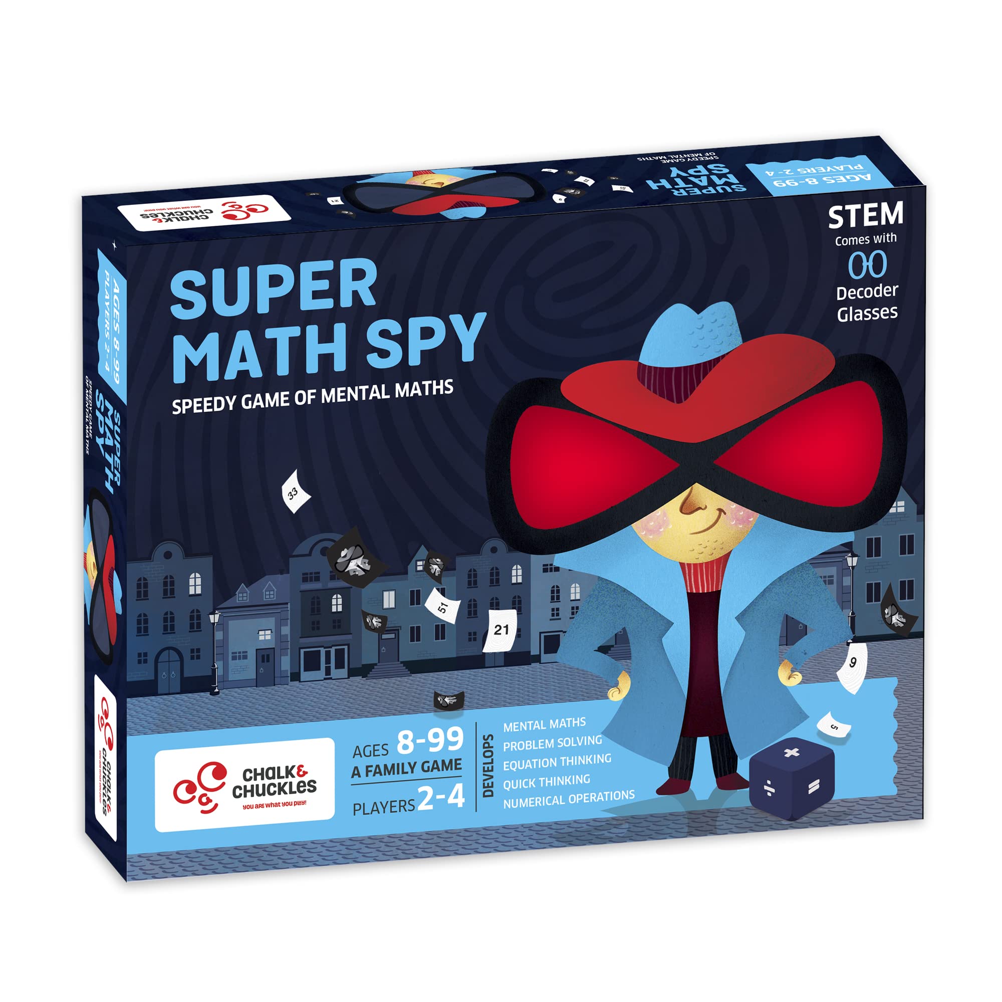 Chalk & Chuckles Super Math Spy Board Game - Super Fun Math Game for Kids 8-12, Smart Educational Game, Practice Multiplication, Division, Addition and Subtraction