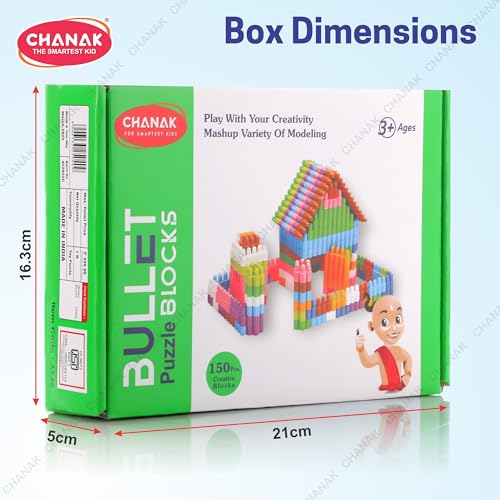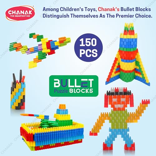 Chanak Bullet Puzzle Blocks play with your childs creativity with a variety of modeling bullet blocks. Interlocking blocks that fit together at any angle. Perfect for the young ones to enhance their imagination and make that practically. Kids can build any size or shape and objects like chairs houses towers and so on. They can build and re-build these bullet blocks for endless hours of fun.