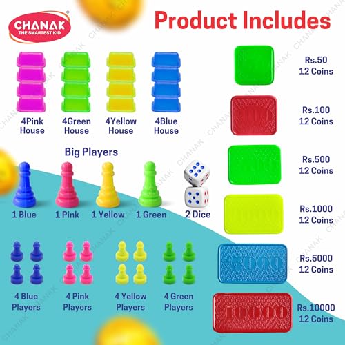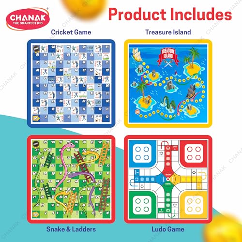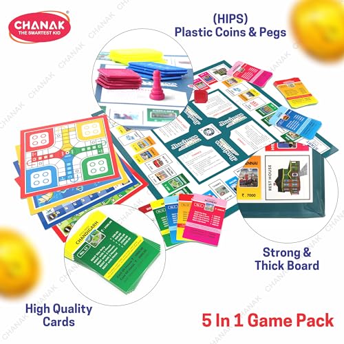 The games objective is to learn business/trade by buying and selling properties so that one becomes the wealthiest player by the same method. This 5-in-1 game creates excitement pleasure and amusement among the players. There are also 4 different types of games in this board game: ludo snake & ladder cricket and treasure island. If youre bored playing one game you also have different ones to play.