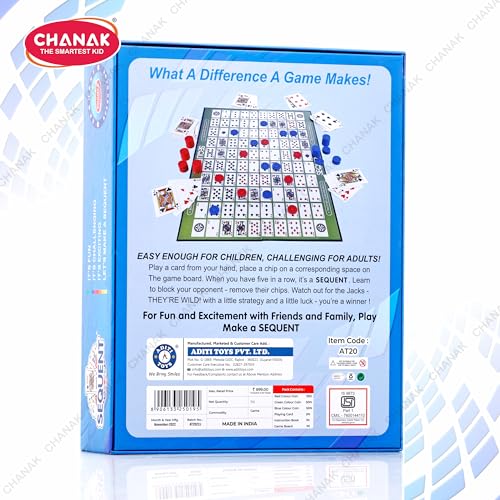 HomeBabyToys & GamesGamesChanak Make A Sequent Board Game Sequence Board Game Strategy & Logic Challenging Game with Foldable Board Plastic Chips & Cards for Kids Above 7 Years (BIS Approved).