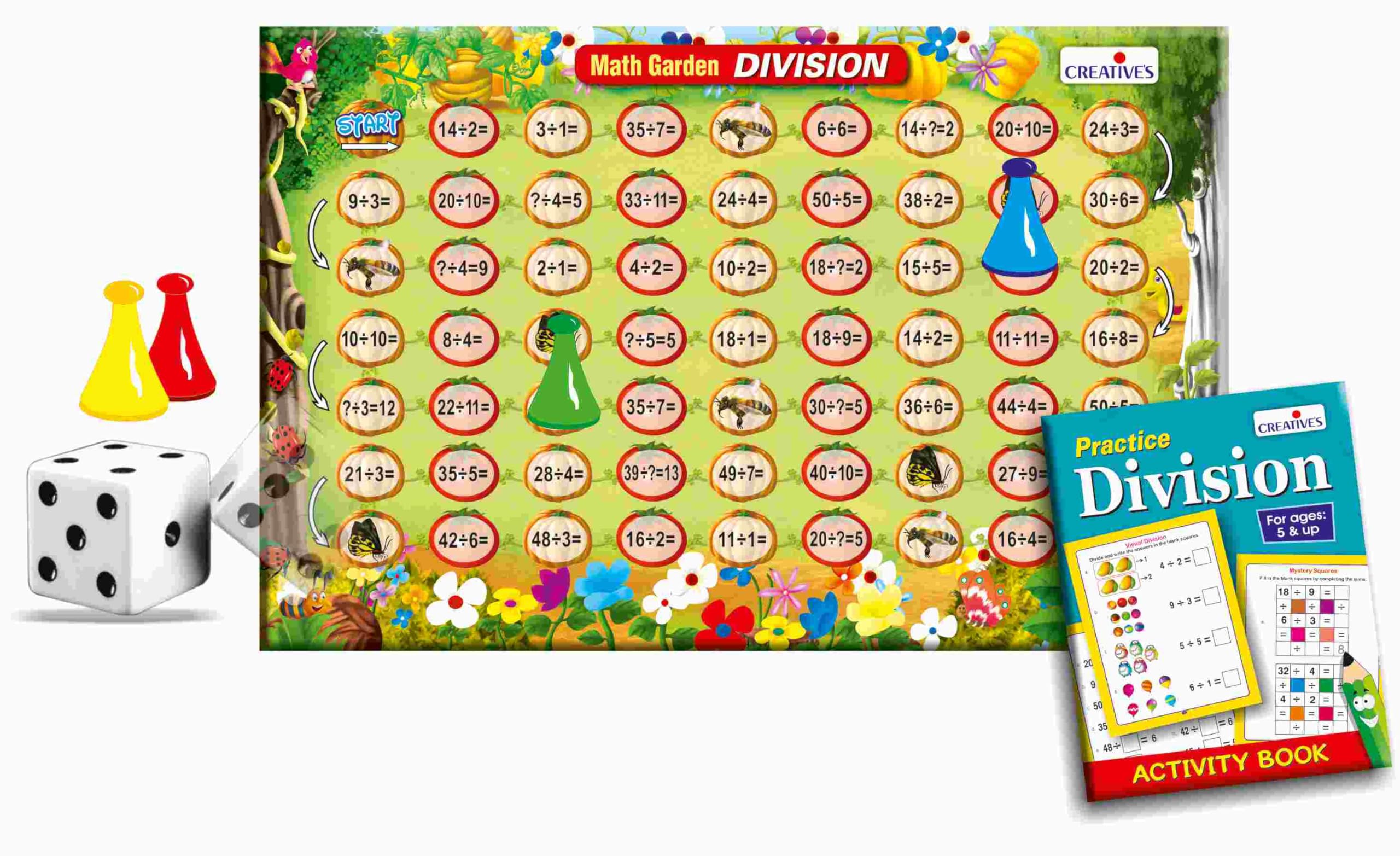 Product Description A unique entertaining game to develop conceptual understanding of the meaning of division and an activity book with engaging activities to reinforce the subject. Set Contains: Contents:board game4 pawns1 dicerulesdivision practice book