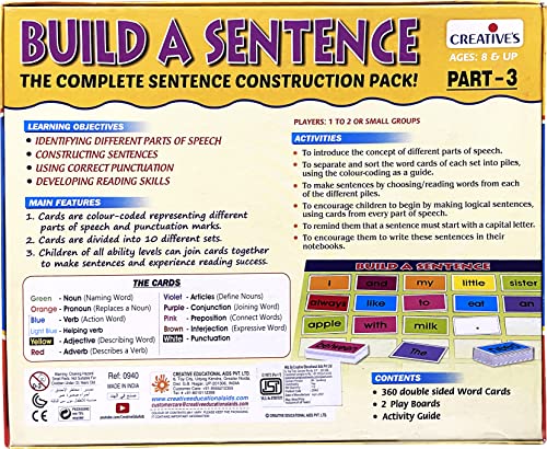 Build a sentence is a complete sentence construction pack.Match colour coded cards in a variety of ways to build meaningful / funny sentences of varying difficulty levels.This set helps to identify parts of speech construct sentences use correct punctuation and develop reading skills.