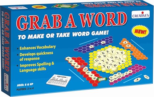 Grab a word is a word game which enhances vocabulary and improves spelling and language skills. It is a make and take word game where players turn over tiles and have to try and make a word with three letters of more. You can also grab your opponents words by adding letters to them and stealing them. The player with the highest points is the winner.