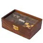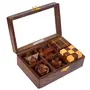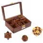 Bring home a fusion of style mind game and beauty with this beautiful Desi Karigar 6-In-One 3D Wooden Puzzle Games Set Brain Teaser made by the craftsmen of Desi Karigar Saharanpur. What's better than having a puzzle game at the ready to help you pass your valuable time? How about having three challenging puzzle games? The 3-in-One Wooden Puzzle Games Set triples the fun by giving you three puzzle games that you can play at home or at the office. Perfect for passing the time on a rainy day taking a break from the stresses of your day and keeping your mind sharp this set is sure to delight any adult or teen. The puzzles included in the 6-in-One Wooden Puzzle Games Set are six dimensional building games. Each one consists of a wooden pieces which are designed to be fit together to create a finished three-dimensional shape. Solving the puzzle takes patience and skill and you can enjoy putting the pieces together again and again. The set includes a diagonal burr a snake cube 3D ball puzzle 3D star puzzle Cube and interlocking blocks. With this 6-in-One Wooden Puzzle Games Set from the house of Desi Karigar you'll never have to worry about pieces becoming lost or damaged. The set includes a wooden tray with six compartments so that you can keep the loose pieces or the assembled puzzles inside until you're ready to play again. The tray measures 7 inches by 5 inches in size and is made from the same high quality sheesham hardwood as the pieces. This whole puzzle game is constructed entirely by hand the 6-in-One Wooden Puzzle Games Set shows off Indian wood working at its finest. This set is so attractive that it can easily be used as a decoration in a den family room office or waiting room. It's also a favorite table game for cafes and coffee shops. Because the pieces and the storage box are handcrafted you're guaranteed to be impressed with the quality of the game set.
