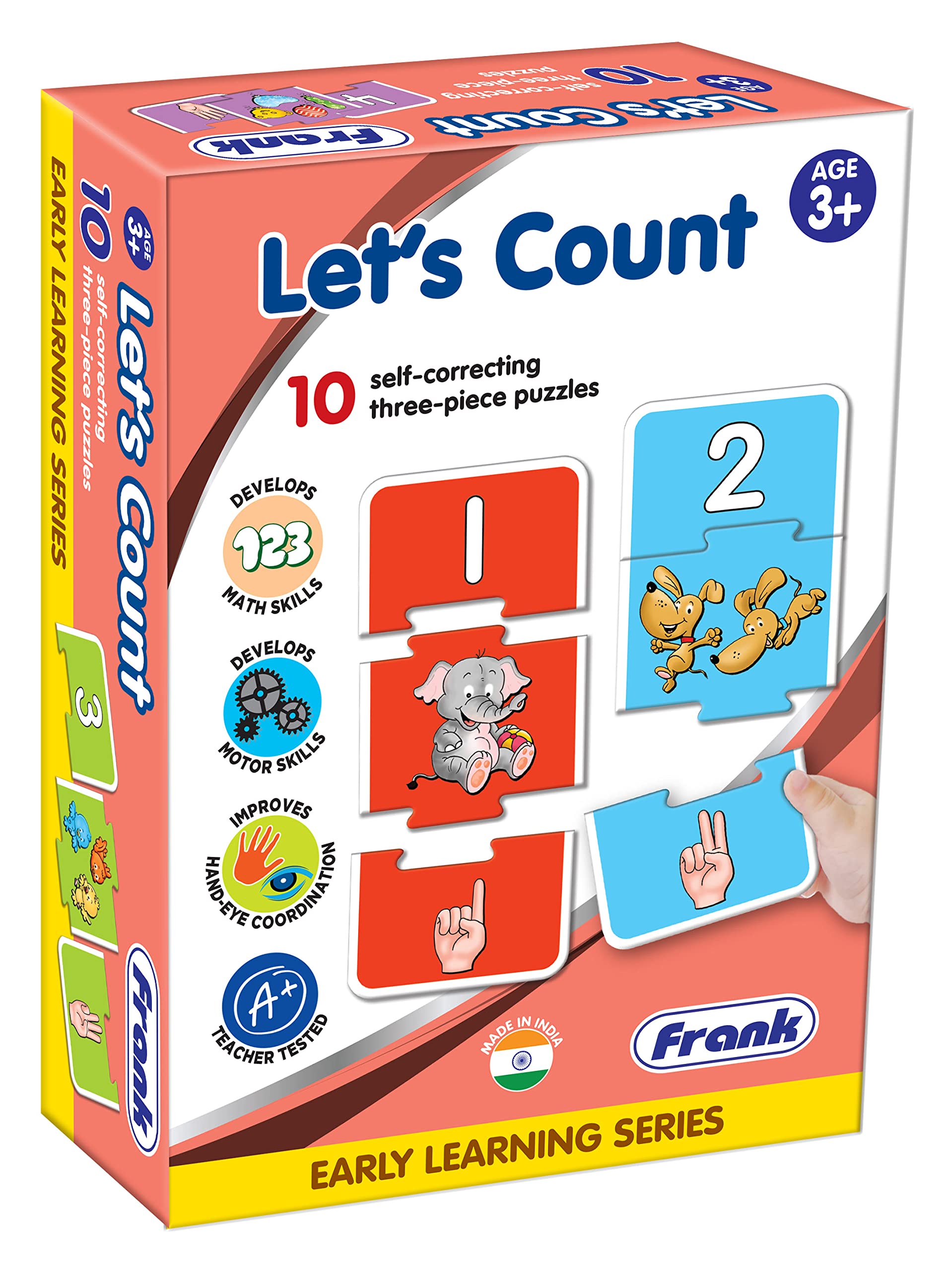 Developing Skills and Early Learning with Letâs Count Puzzle This Frank Letâs Count Puzzle is designed to help little ones stay put and have fun while learning. Keeping minds engaged in a productive way the educational puzzle features fun matching concepts to keep children occupied for a long-time span. It is made to boost problem-solving skills through personal learning experiences at home as well as preschools classrooms and daycares. The 3-piece jigsaw puzzles can help boost early learning skills such as sorting concentration teamwork and visual abilities. The fun learning activity jigsaw set is tested by real educators and is recommended to help enhance motor skills and hand-eye coordination of early learners.