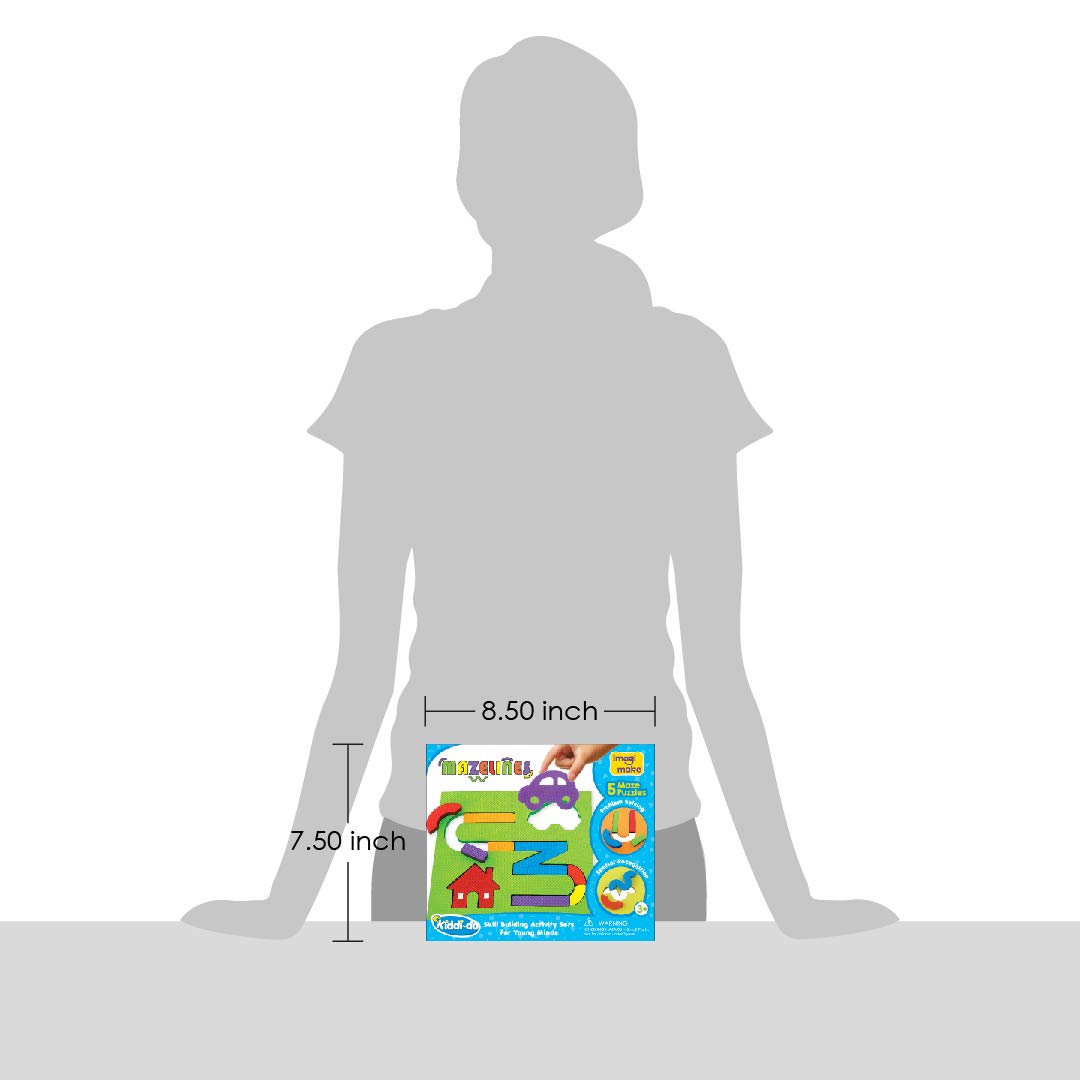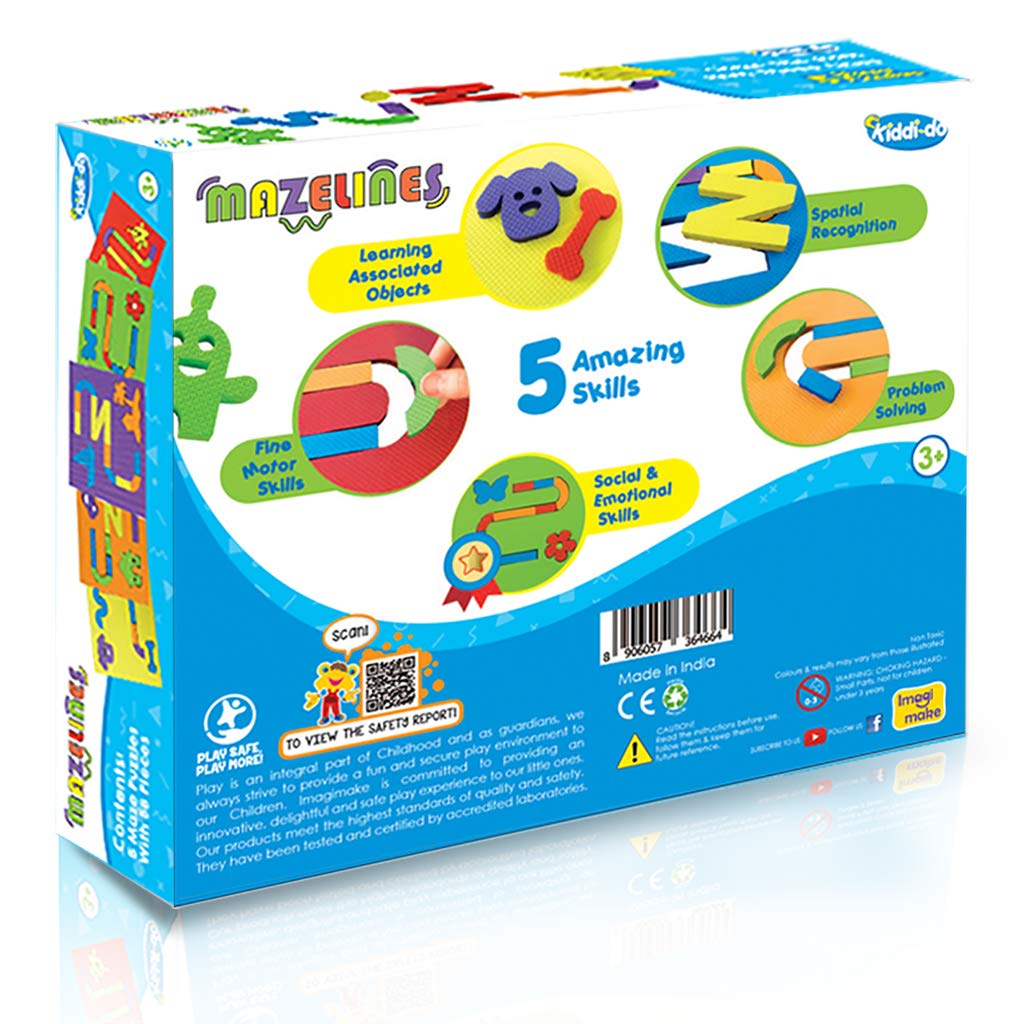 The activity set comes with 5 Maze Puzzles with associated objects like Flower & Butterfly or Dog & Bone. It is a unique and fun way to hone the problem solving skills of toddlers (3 Years +) as they try to get the two associated objects come together by solving the maze. Mazelines is also a great way to help the kid develop spatial recognition as they learn to differentiate between sizes styles of lines and their orientations. Each puzzle is 20 cm x 18 cm (7.5 inch x 7 inch) and is perfect for children as young as 3 years. It uses 8 mm thick pieces of Soft Sturdy and Safe foam material that complies to European safety standards.