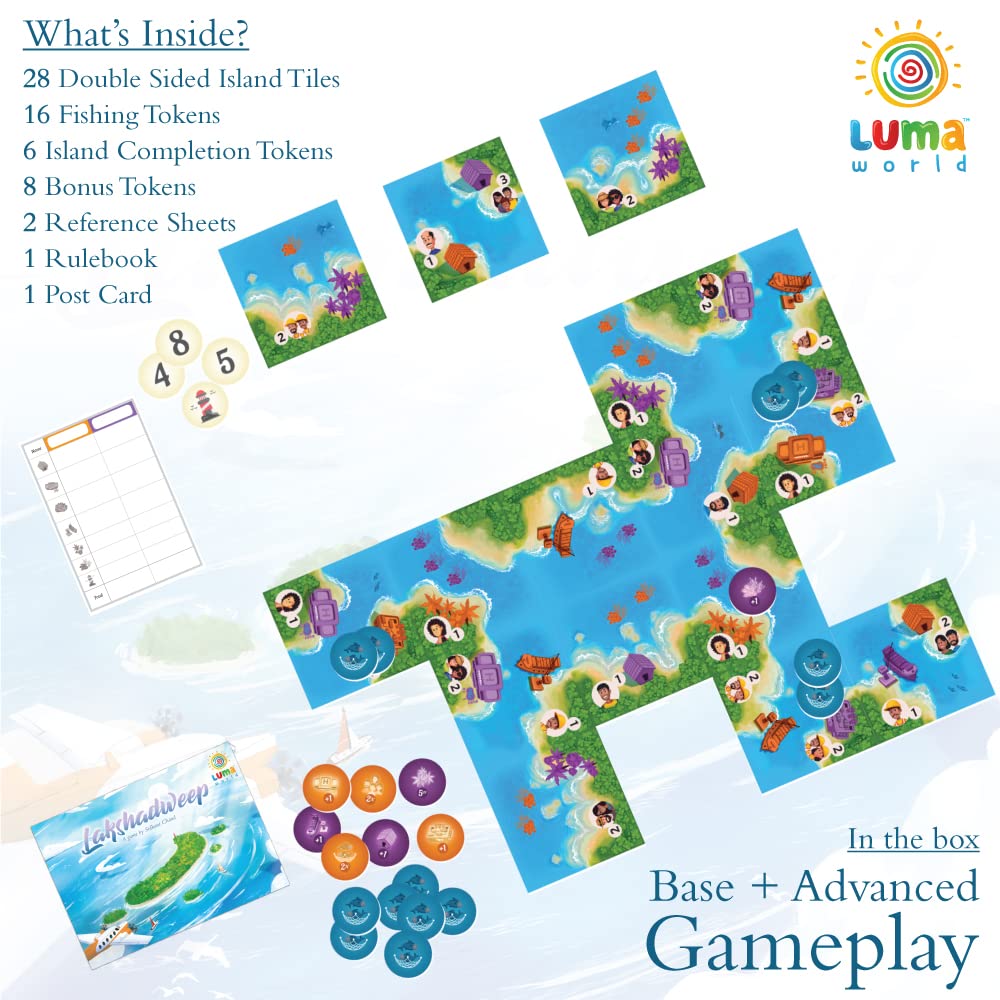Lakshadweep 2-Player Strategy Board Game, Tile Placement City Building Tabletop Game for Couples and Family, Advanced Game Expansions Included, Ages 10 and up, 30 Minutes