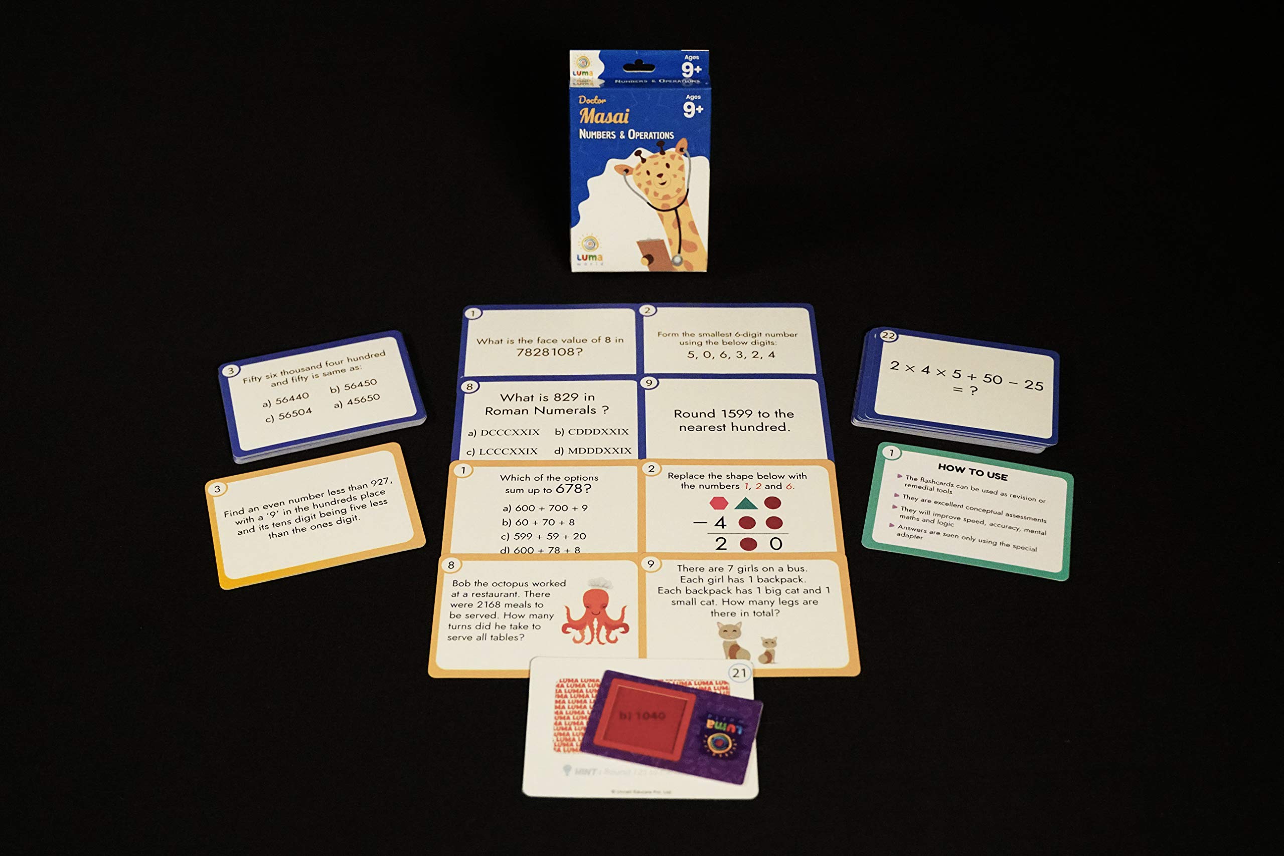Luma World Doctor Masai Educational Game-Based Math Flash Cards with a Fun Magic Glass to View Hidden Numbers for Ages 9+ Years to Learn Grade 4 Numbers and Operations, Set of 50 Cards