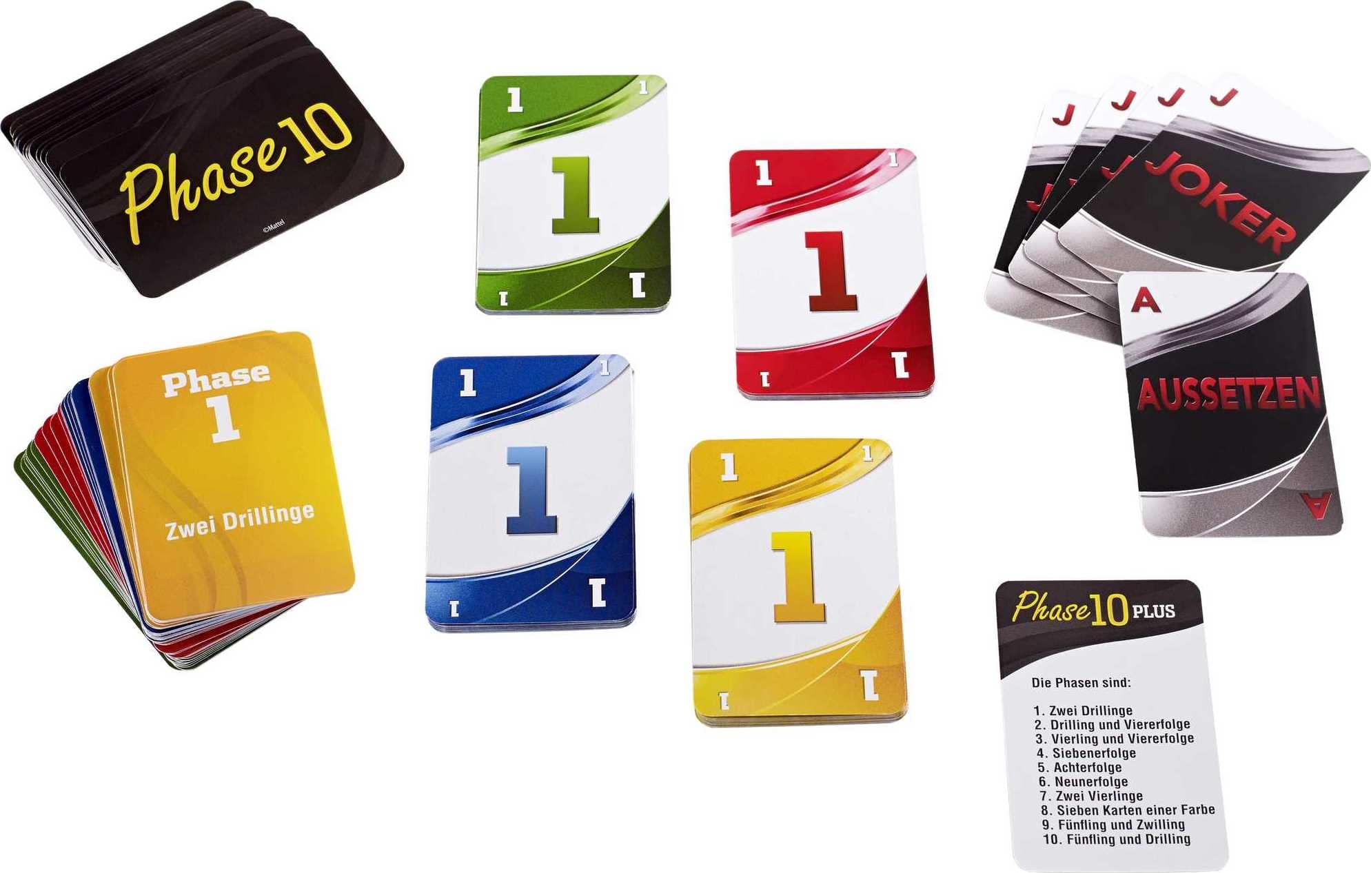 From the makers of UNO comes a rummy-type card game with a challenging and exciting twist! The object of the game is to be the first player to complete 10 varied phases with two sets of three one run of seven or seven cards with the same color. The twist is that each Phase to be completed is specific for each hand dealt. Players who complete one Phase advance to the next but those who don't must keep trying until they do. Each deck features âWildâ and Skipâ cards which add excitement and can help you get out of a sticky situation. A âWildâ card can be used in place of a number card as well as be used as any color to complete any phase while a âSkipâ card causes your opponent to lose a turn! Be the first person to complete all ten phases to win the game. Includes 108 cards and instructions. Colors and decorations may vary.