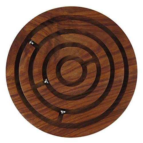 "This Handcrafted Indian Wooden Labyrinth Ball Maze Puzzle Game & Decoration follows in the tradition of the original Pigs in Clover Game and is sure to become a favorite activity for a special child in your life. This Handcrafted Indian Wooden Labyrinth Ball Maze Puzzle Game & Decoration is a maze game that is fun and engaging to play. The toy is hand fashioned out of sheesham wood and consists of a large round disc. Deep grooves have been carved into the surface of the disc and the entire toy has been sanded to a smooth finish with no sharp edges. Three small steel balls have been placed inside of the grooves. When the toy is rattled jostled tipped and shaken the balls move about inside of the maze track. To win the game kids must get all three of the balls into the middle of the puzzle. Game play requires hand eye coordination fine motor skills and problem solving skills and will aid in children's growth and development in a fun way! Measuring 6 inches in diameter the Handcrafted Indian Wooden Labyrinth Ball Maze Puzzle Game & Decoration is very easy for kids to hold onto as it was designed for their smaller hands. This game is best enjoyed by children aged 9 to 12 years but it can also be challenging for adults. When not in use the puzzle game can be displayed on a table dresser shelf or desk as its rich finish is sure to make a handsome decoration for any space in the home. The toy is a popular choice of gifts for any occasion from Christmas to birthdays and it is a great travel game. Give your child or another special little one in your life the finest of gifts! Order one of our Handcrafted puzzle from craftatoz.