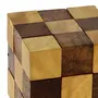 The wooden snake cube puzzle is made up of a long wooden chain of 27 "cubelets." By intricately bending placing and building the cubelets on top of one another you can create one solid cube. Each of the 27 cubelets is connected to one another with an elastic band on the inside to keep the cubes together but still bendable. When finished you'll have a 3-inch by 3-inch by 3-inch cube.