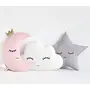 Designed In Shape Of Cloud Moon And A Star This Soft Toy Cum Cushion Combo Is Sure To Amaze Your Little Ones. Crafted From Plush Velvet Fabric These Toy Cushions Are Absolutely Safe For Kids And Are Super Soft To Play With. These Are The Perfect Cuddle Partners For Your Tiny Ones.Cute Crib Soft Toys Cum Cushion Combo Of 3 Pcs