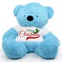 HUG 'n' FEEL SOFT TOYS Big Teddy Bear 4 feet Long Teddy Bear Wearing A Merry CHEISTMAS T-Shirt Teddy Bear Plush & Stuffed Toys (Bear 121 cm) with Free Heart Shape Pillow Blue