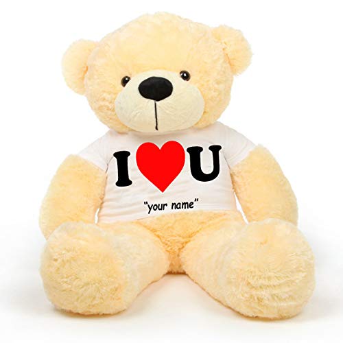 HUG 'n' FEEL SOFT TOYS Big Teddy Bear Wearing I Love u Customise Your Name T-Shirt 3 feet Cream_T Shirt_I Love u Customise Your Name Plush & Stuffed Toys