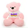 Hug'n'Feel Soft Toys Big Teddy Bear Wearing Happy Birthday T-Shirt 4 feet Pink_T Shirt_Happy Birthday Plush & Stuffed Toys