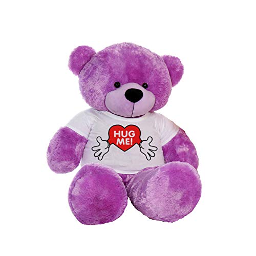 Hug'n'Feel Soft Toys Big Teddy Bear Wearing Hug me T-Shirt 3 feet Purple_T Shirt_Hug me Plush & Stuffed Toys