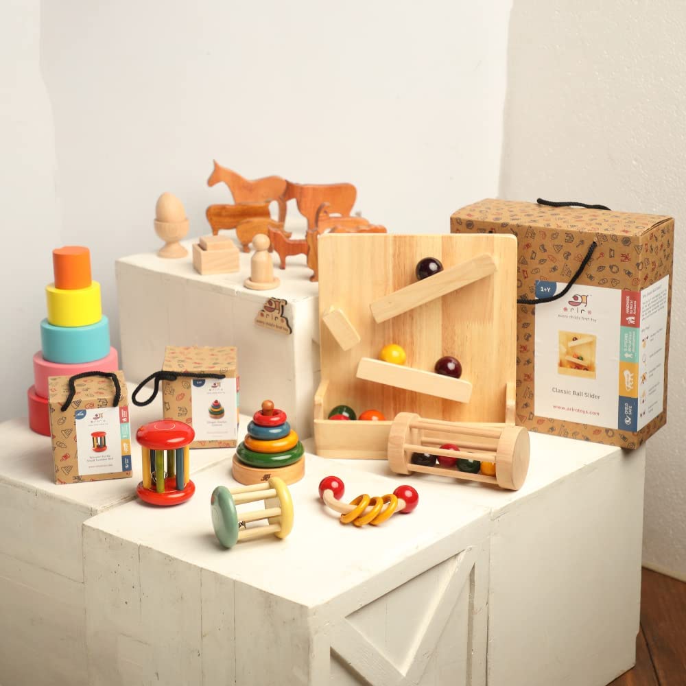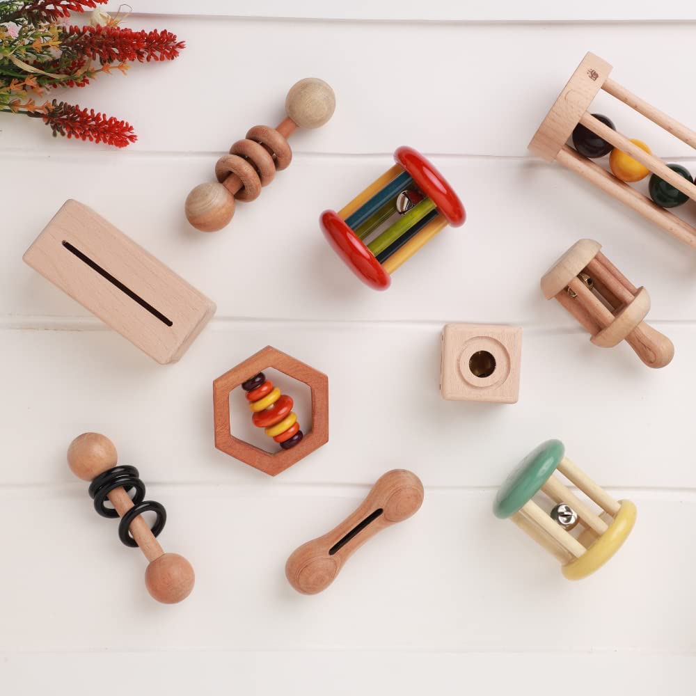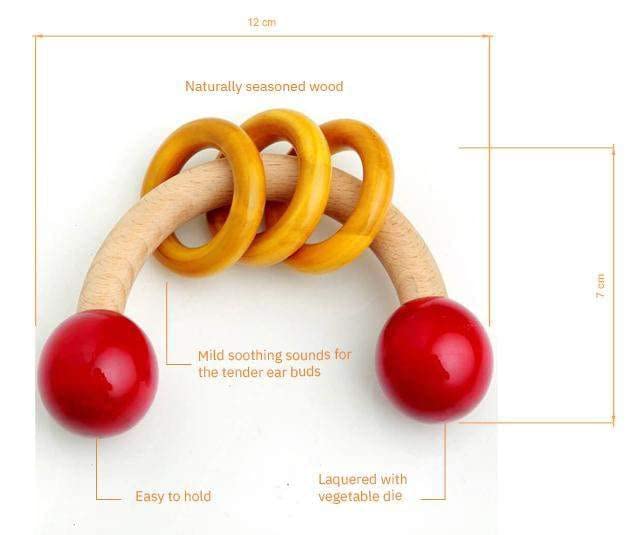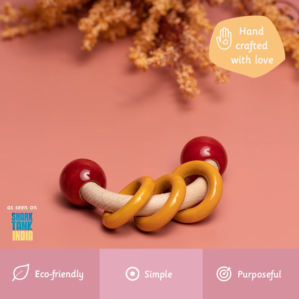 Ariro Wooden Rattle Curvy with The Rings | Multicolor for Baby Boy and Girl | Helps in Good Grasping Sensorial Development Fine Motor Skills | Supports Exploration & Tactile Experience