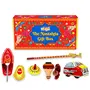 Desi Toy Nostalgia Toys Festival Gift Box (Combo of 6) Spinning Top Lattu Steam Boat Tin Clicker Tin Top Handcrafted Pencil Windup Tin Classic Toy Car Playset for Kids (Nostalgia Gift Box)