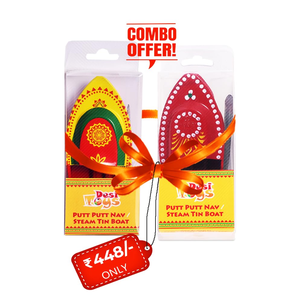 Desi Toys Putt Putt Nav Handcrafted Pop Pop Steam Boat Toys (Pack of 2) Classic Indian Water Toy | Nostalgic Tin Toy | Includes Free Candle & Dropper | Educational Gift for Kids 14+ | Fun Water Play