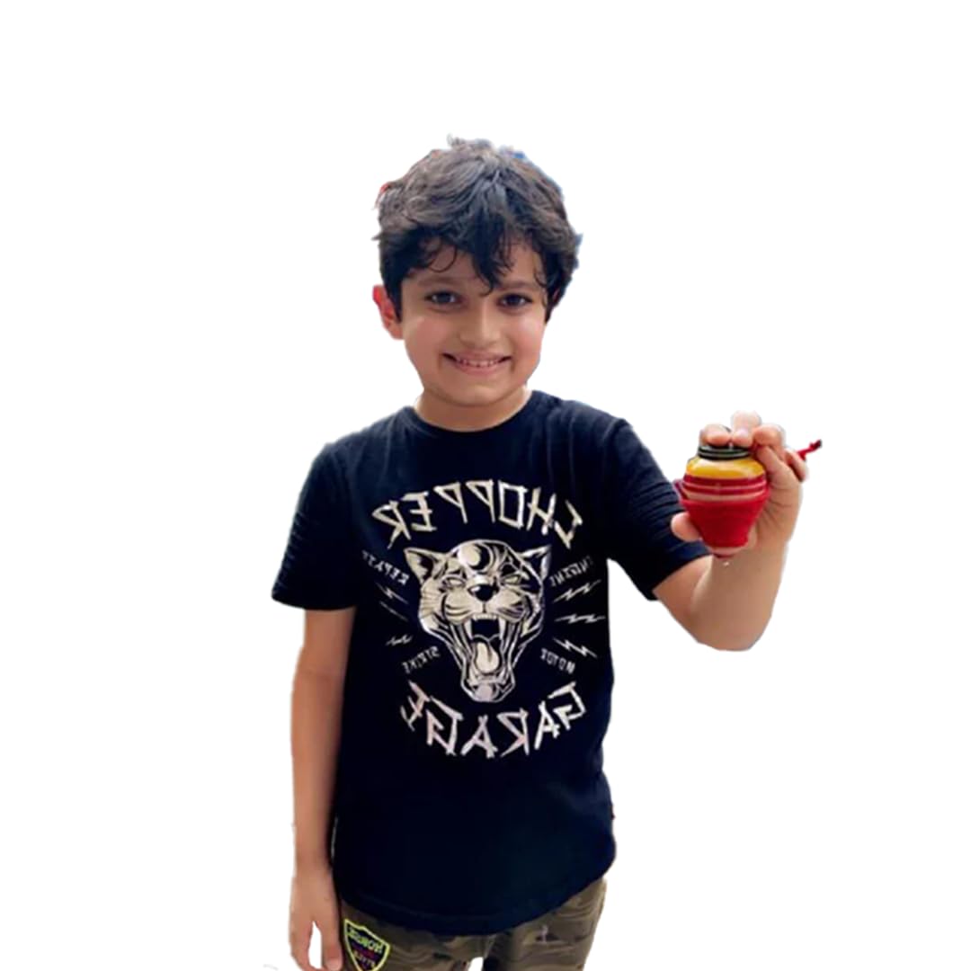 Desi Toys Spinning Tops & Wooden Catapult Combo Traditional Indian Wooden Toys Set | Handcrafted Lattu & Gulel | Develops Hand Eye Coordination Logic Science Skills | Made in India Eco Friendly