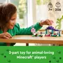 LEGO Minecraft The Animal Sanctuary (21253) is a versatile brick building gift idea for gamers and kids. The toy includes 6 Minecraft animals for girls and boys aged 7+ to care for and the first appearance of LEGO Minecraft character Efe for gaming-action role play. This plains biome animal set contains 3 areas: a fenced-in play-space with a gate and a room housing a chest full of animal food including a bone a carrot and wheat; a picnic area with a table beneath a tree; and a carpet where tired animals can rest. As well as the animal caretaker Efe the set's baby mobs include a Minecraft cat magenta sheep wolf rabbit cow¦ and even a Minecraft Baby Zombie. This LEGO Minecraft building set for kids is a video game toy gift idea for kids and animal lovers. It encourages independent role play and integrates easily with other LEGO Minecraft toys (sold separately). For extra digital fun the LEGO Builder app allows builders to zoom in rotate models in 3D and track their progress.