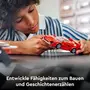 1 minifigure Car playset includes a Ferrari driver minifigure with a helmet wig and wrench that kids can place behind the wheel to stage races