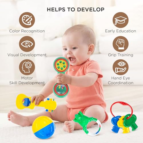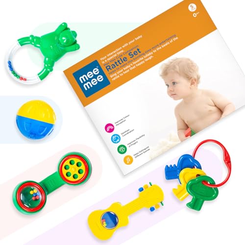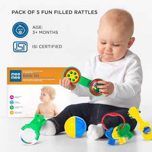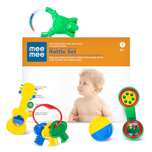 HomeBabyToys & GamesToysMee Mee BPA Free Baby Rattles Set, Rattle Gift Set, Made of Food Grade Plastic, Grab Rattles and Soothing Teethers for Babies & Infants, Early Age Toys for Kids, Girls & Boys (Pack of 5, Multicolor)