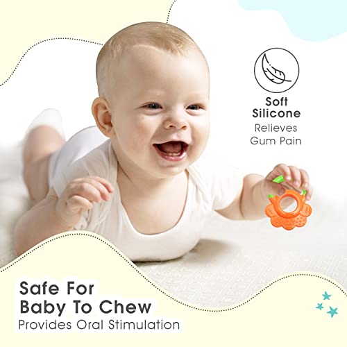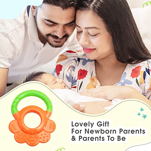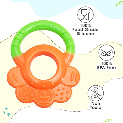 HomeBabyToys & GamesToysMee Mee Silicon Baby Teether for Teething Gums, Teething Toy with Muti-Textured for Infants and Babies, Flower Design (Single Pack, Green & Orange)